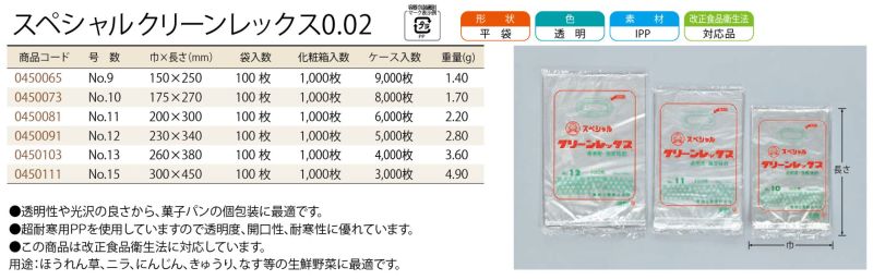 スペシャルクリーンレックス0.02は、透明性や光沢の良さから、菓子パンの個包装に最適です。超耐寒用PPを使用していますので透明度、開口性、耐寒性に優れています。