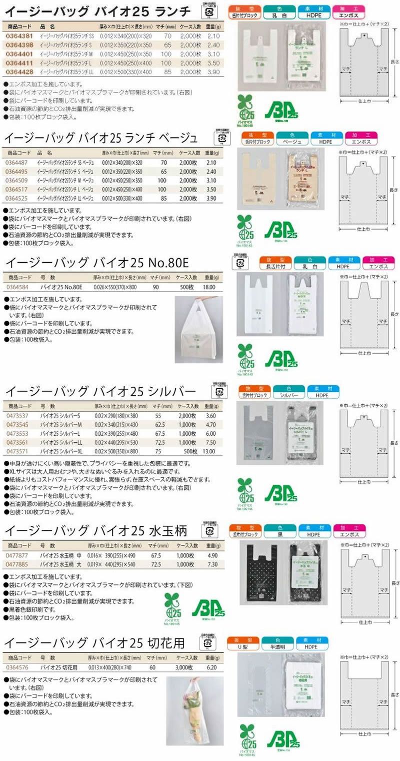 イージーバッグバイオ25は、エンボス加工を施しています。袋にバイオマスマークとバイオマスプラマーク、バーコードが印刷されています。石油資源の節約と石油資源の節約とCO2削減が実現。