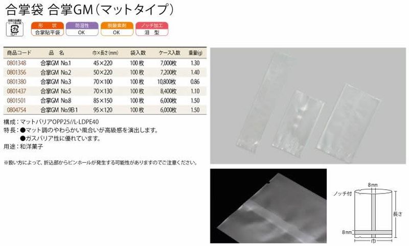 合掌袋 合掌GM(マットタイプ)はマットな質感がお菓子の雰囲気を高めてくれます。