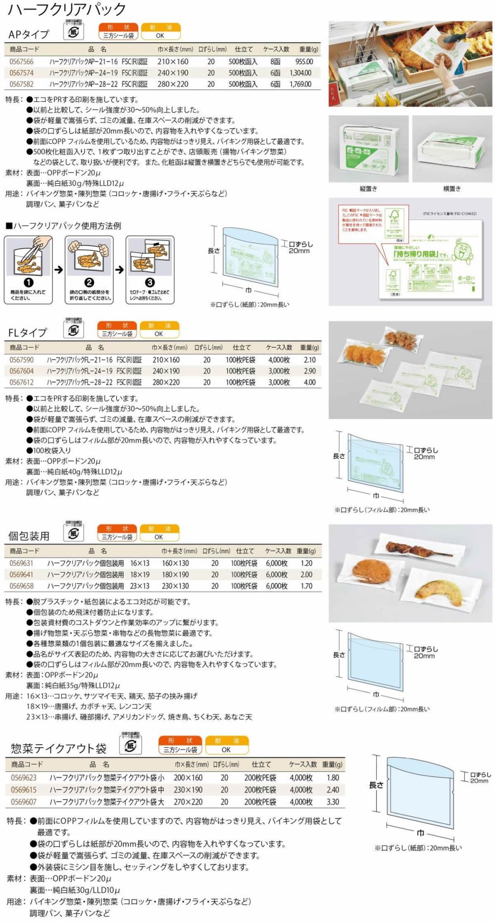 ハーフクリアパック 惣菜テイクアウト袋 小