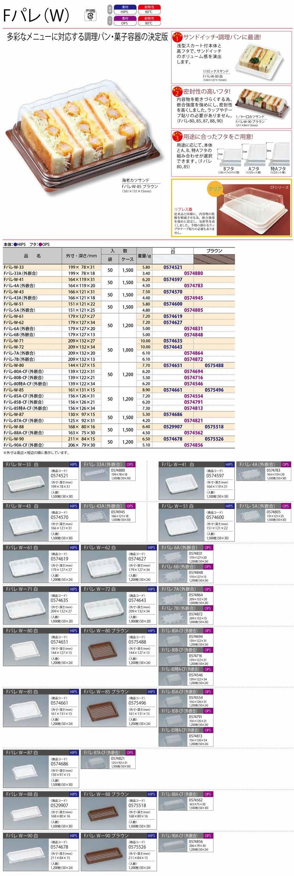 Fパレ(W)は、多彩なメニューに適応するサンドイッチ・調理パンの決定版容器です。