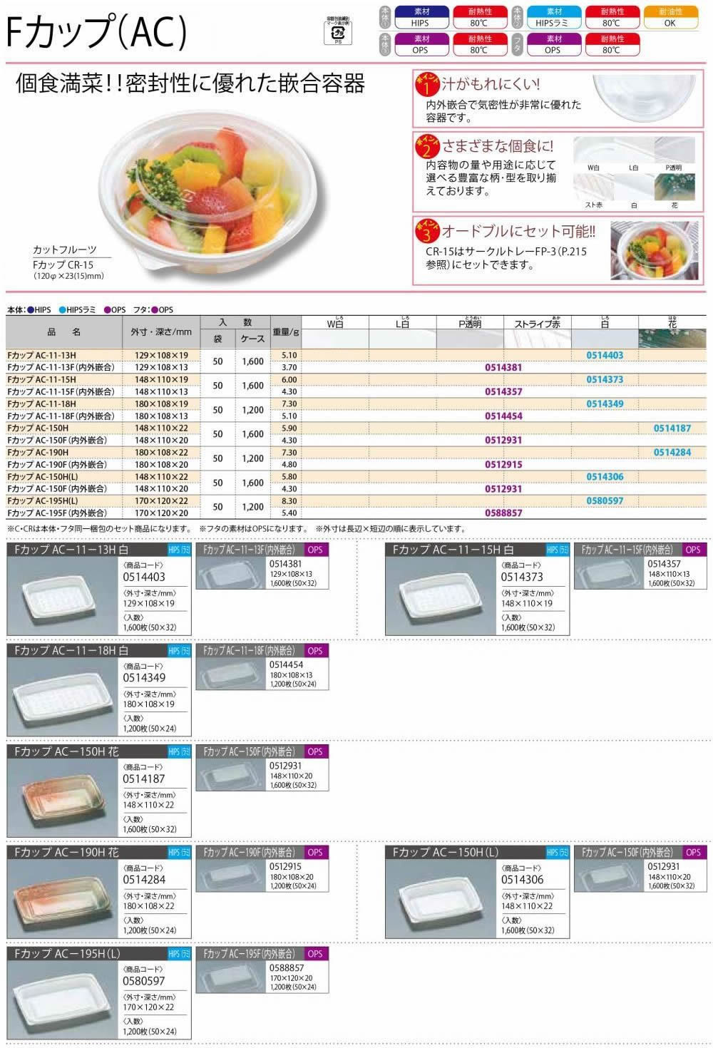 Fカップ(AC)は様々なメニューに対応します。密封性に優れた汁もれしにくい内外嵌合容器です。