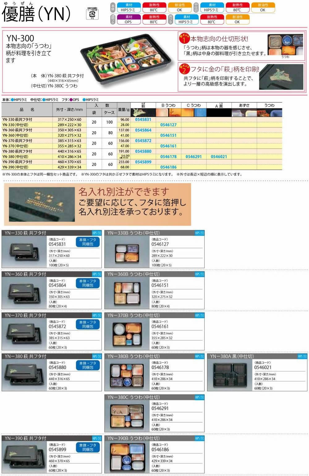 優膳YN-300は本物志向の「うつわ」柄が本物の器を感じさせ、「黒」柄は中身の御料理を引き立つように見映えさせます。