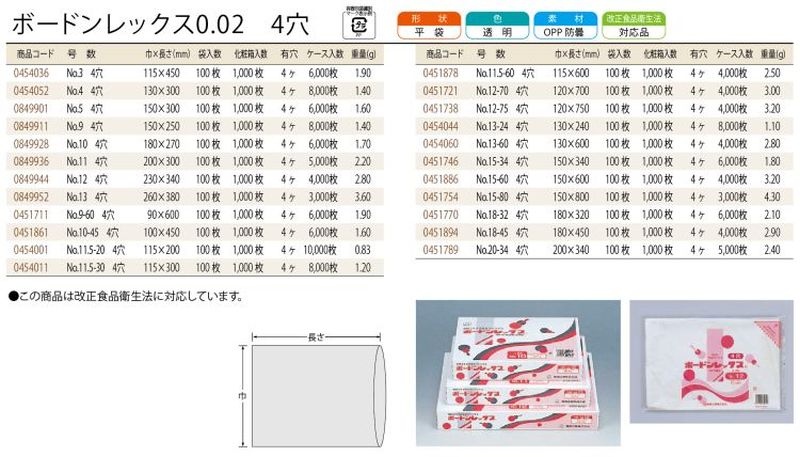 ボードンレックスは、優れた防曇効果、防滴効果、透明度があります。水滴が発生しにくい品質なので、生鮮野菜、青果物、水産練製品等の水分を含んだ食品の鮮度を保持するので包装に最適です。